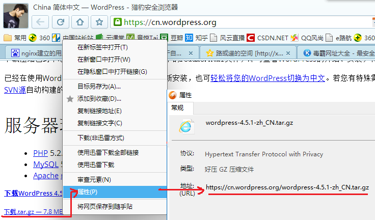 ②获取最新的wordpress安装程序,解压到/var/www/html/目录下。 获取wordpress的tar包方法如下: