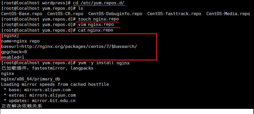 这时候需要手动创建并编辑 /etc/yum.repos.d/nginx.repo文件,便可以安装
